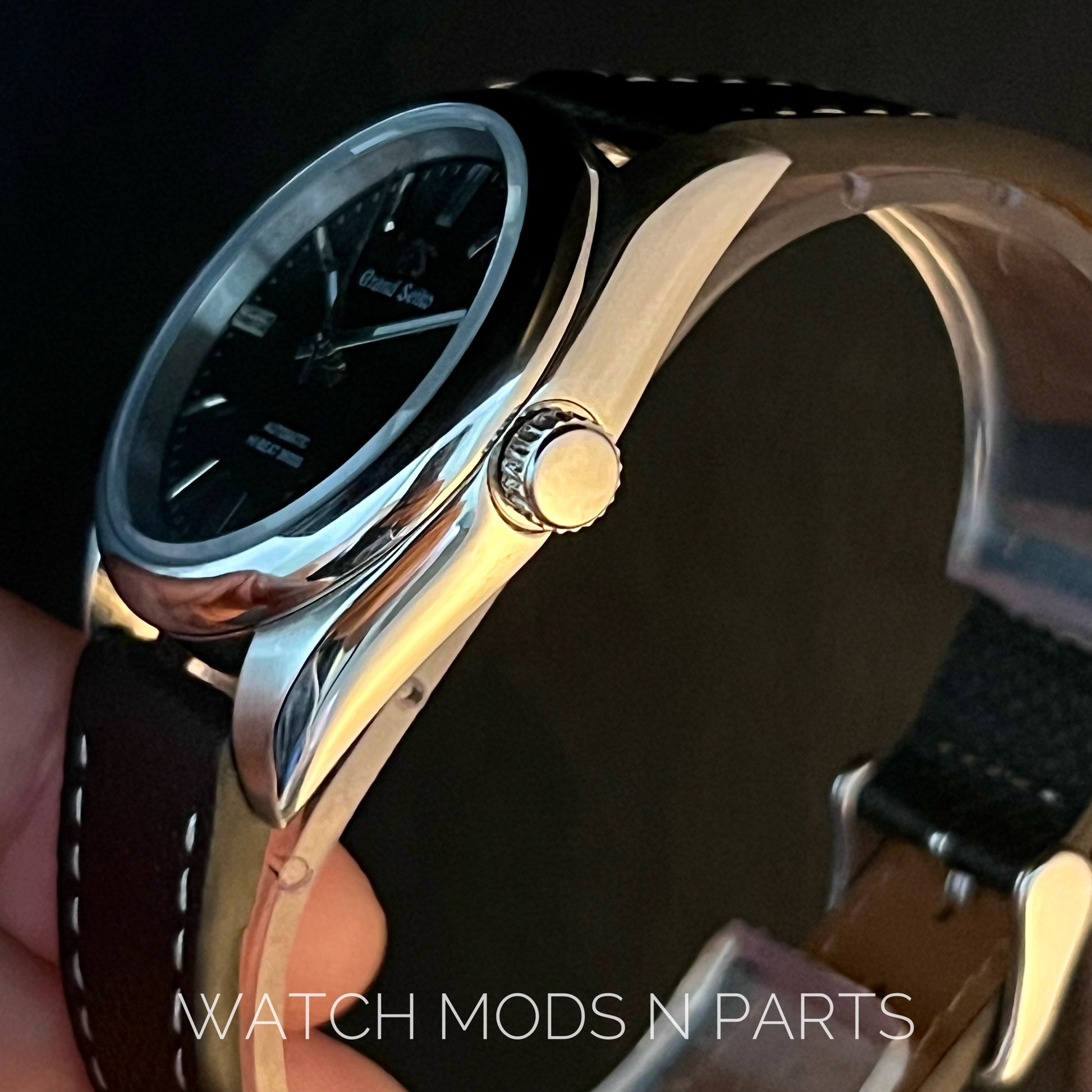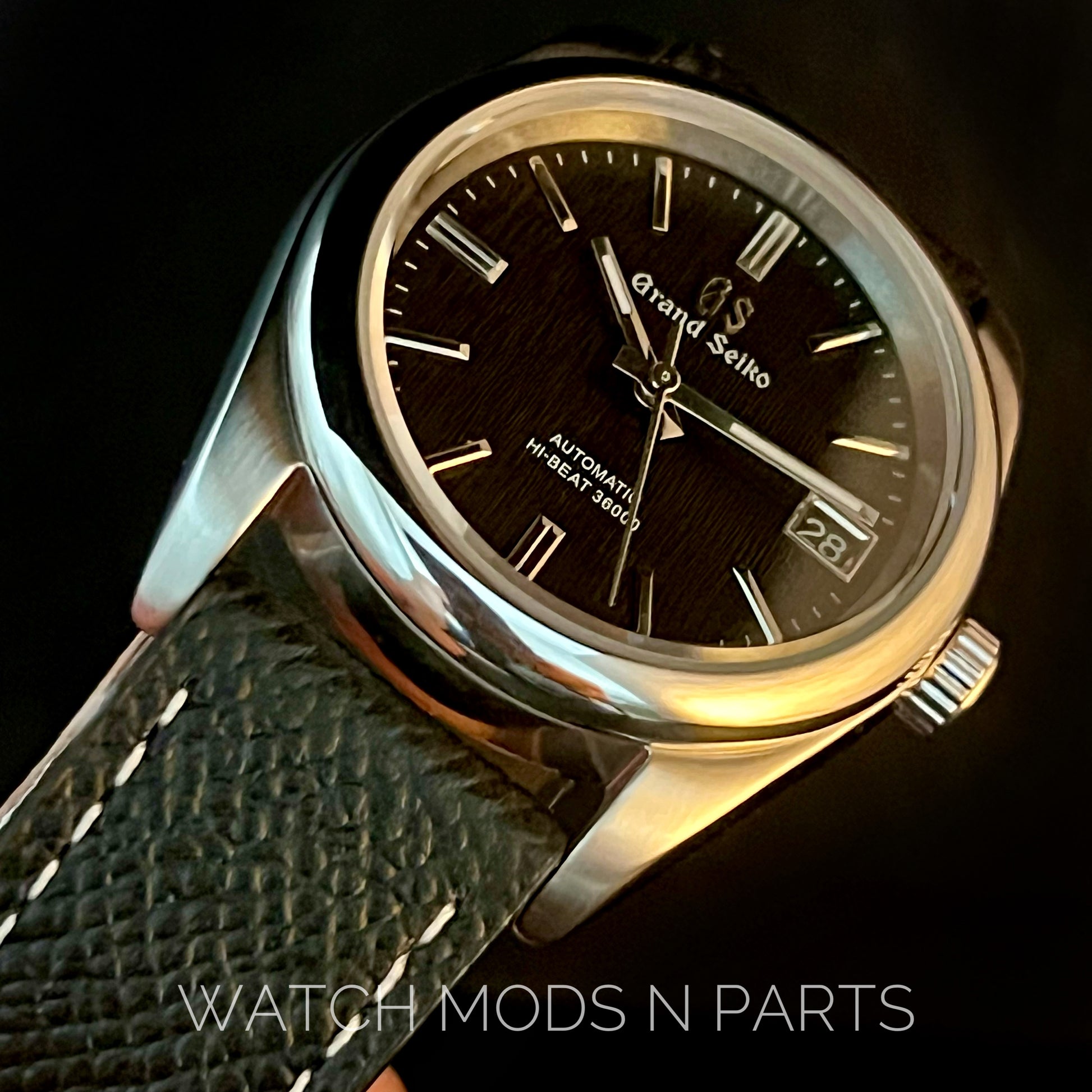 Custom Mod Grand Seiko GS GMT 36mm Black Textured dial on Black Epsom Leather