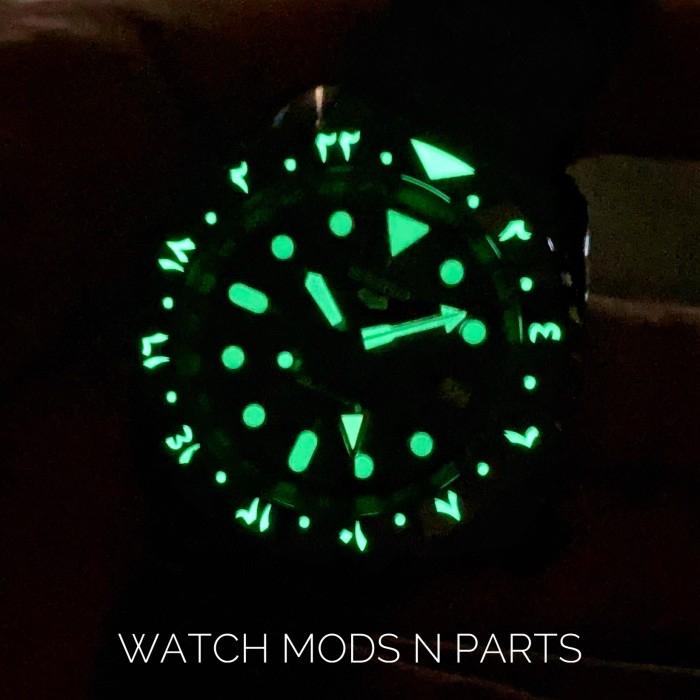 WMNP Seiko Mod Full lume GMT Chapter Ring and Bezel with GMT skx style 42mm Black Body Seiko Automatic Movement NH34